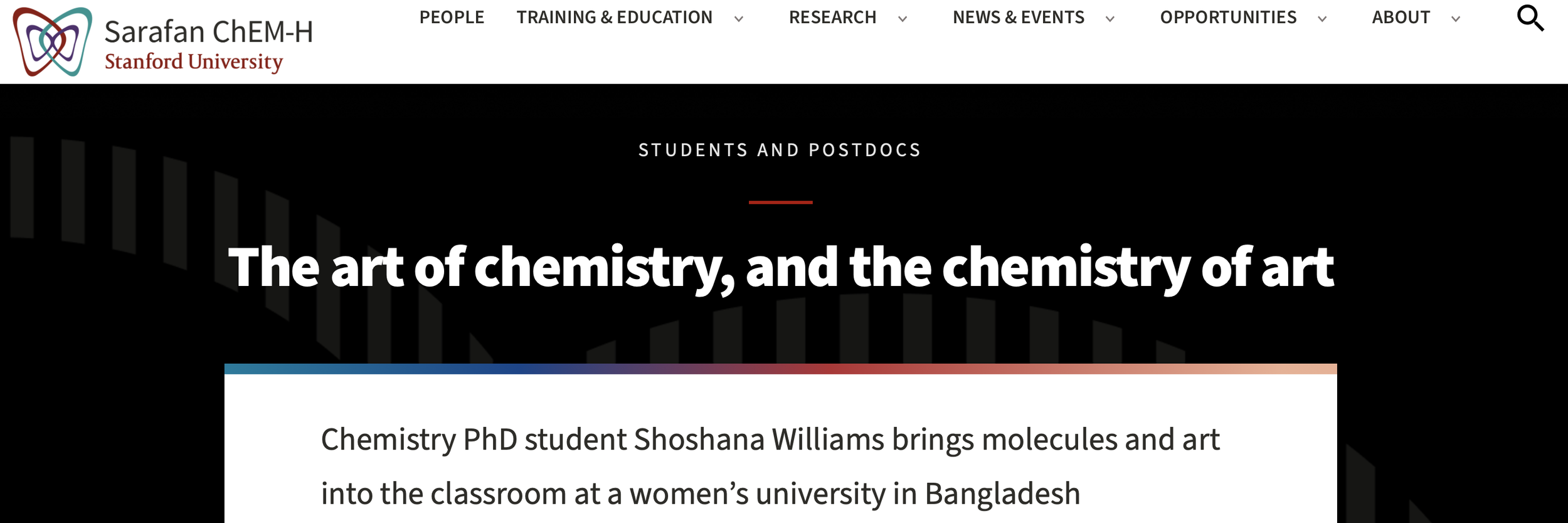 Aug 2025 - Cool highlight of Shoshana’s work by Stanford ChEM-H: The Art of Chemistry, and the Chemistry of Art
